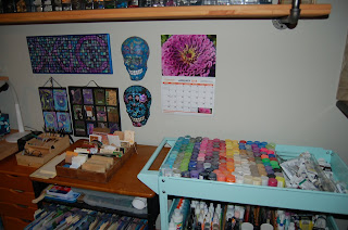If I wasn't so pleased with the new space and paint cart I would point out to him that I would not have been bitching about selling this house so much if he had just moved the damn thing. Maybe he will figure it out himself. He also fixed a pole in my laundry closet so I could reach it. So guess what? This house ain't so bad after all...I do want a house someday that has a huge studio and don't really care about the rest of it besides I would prefer NO neighbors. We have been here for eleven years. Dang...